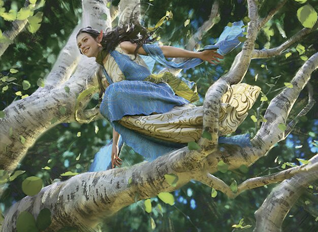 In translating Arbor Elf into Tolkien’s languages, I considered how the official translations generally describe an elf associated with trees, woods, or forested places. Most languages render the idea with terms relating to woodland elves or elves connected with trees and groves. For Sindarin, I rendered the title as Edhel in·eryn, using edhel “Elf” combined with eryn “woods, forests,” expressing the idea of an elf belonging to or dwelling among the trees. In Quenya, I rendered the title as Elda i·toasto, using Elda “Elf,” literally “one of the Star-folk,” paired with toasto, the genitive form of töasta “grove.” Both constructions therefore convey the idea of an elf associated with wooded places or groves, reflecting the imagery suggested by the card while remaining consistent with Tolkien’s vocabulary and grammatical patterns.